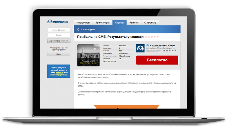 Все занятия состоят из двух частей: вначале изучаем теорию, во второй части — отрабатываем её на практике на живом рынке.