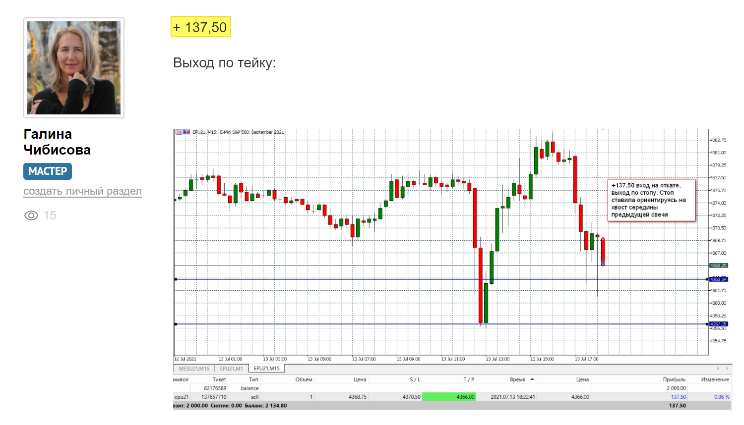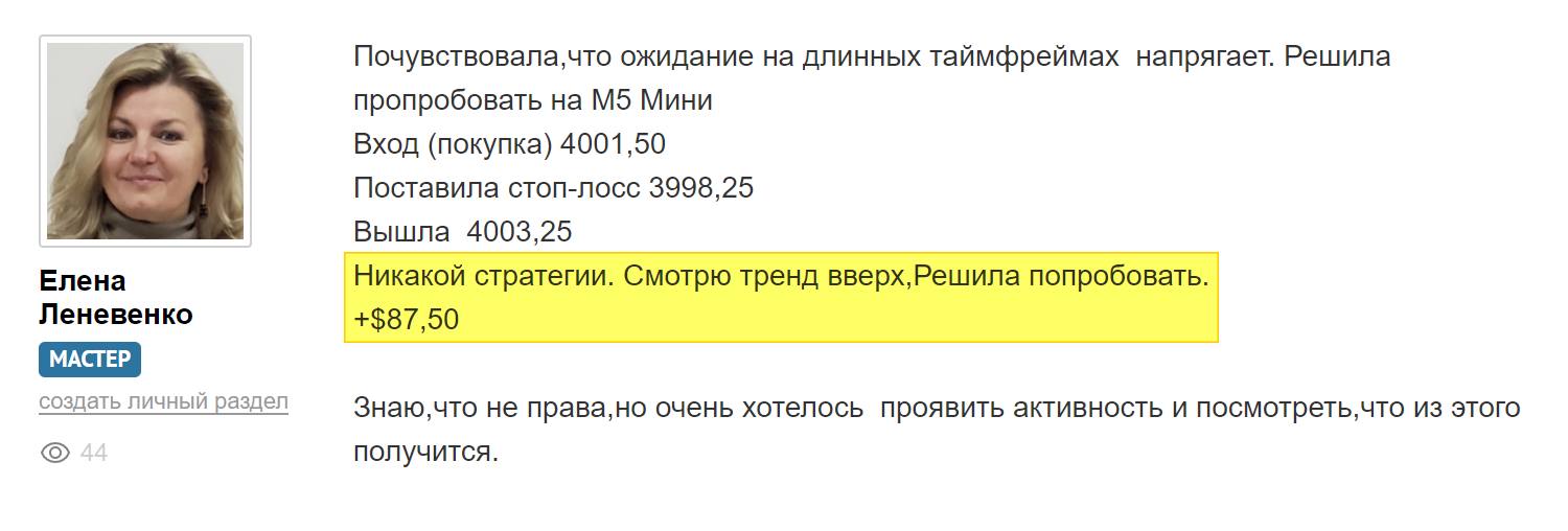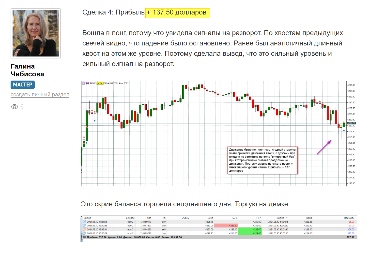 Базируясь на принципах этой стратегии Любовь Зуева ведет публичную прибыльную торговлю с 2013 года (подробности ниже по тексту).