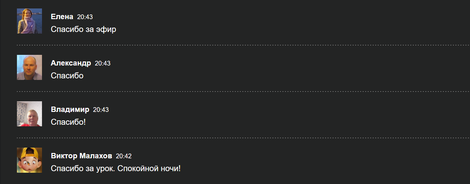 Всё это время мы проводим вместе. На каждом занятии сначала изучается немного теории, а затем сразу практика. Здесь и сейчас, на реальном рынке.